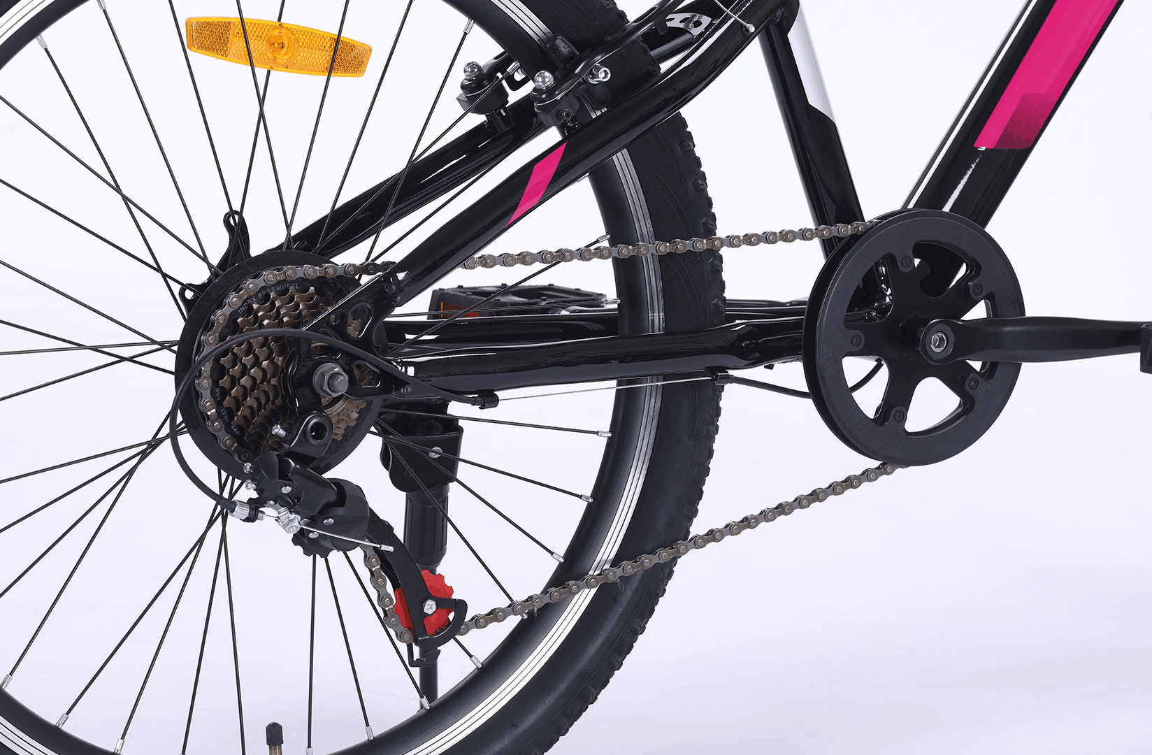 Ergonomski oblikovano sjedalo i pedale s reflektorima povećavaju udobnost i sigurnost, dok 24" × 2.125" kotači osiguravaju stabilnu i glatku vožnju.