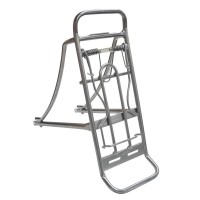 Nosač s držačem za teret. Varena konstrukcija od alu cijevi, nosivosti do 25 kg. Može se montirati na sve bicikle bez obzira na veličinu i oblik okvira.
